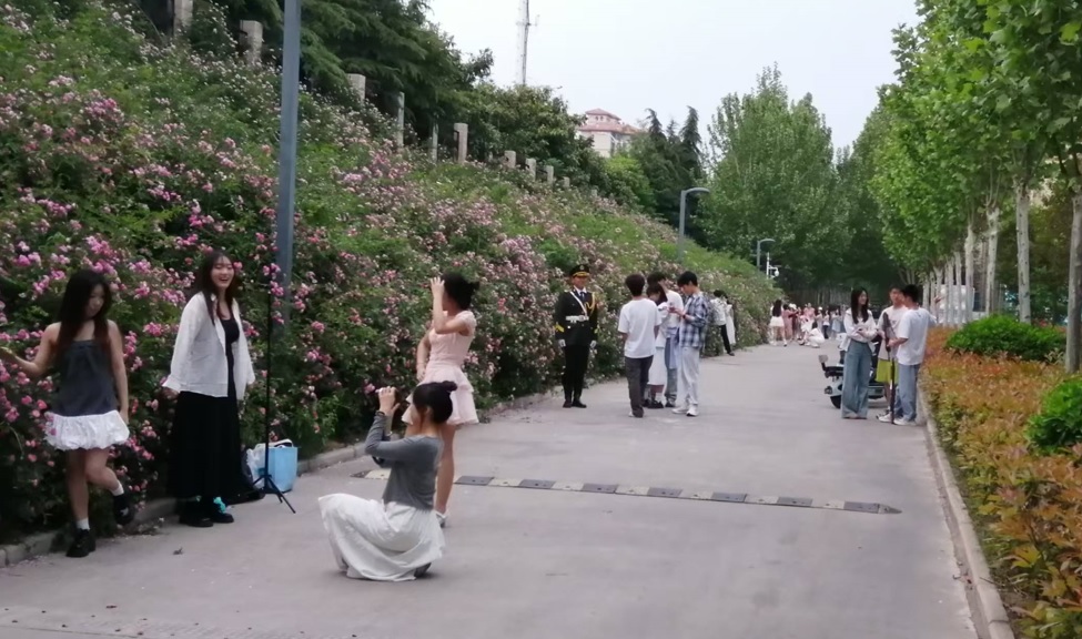 At the university, there’s this magical road lined with roses that bloom once a year. Naturally, girls flock there for those dreamy, Instagram-worthy pics. It's basically the Coachella of floral photo ops. ๐น๐ท